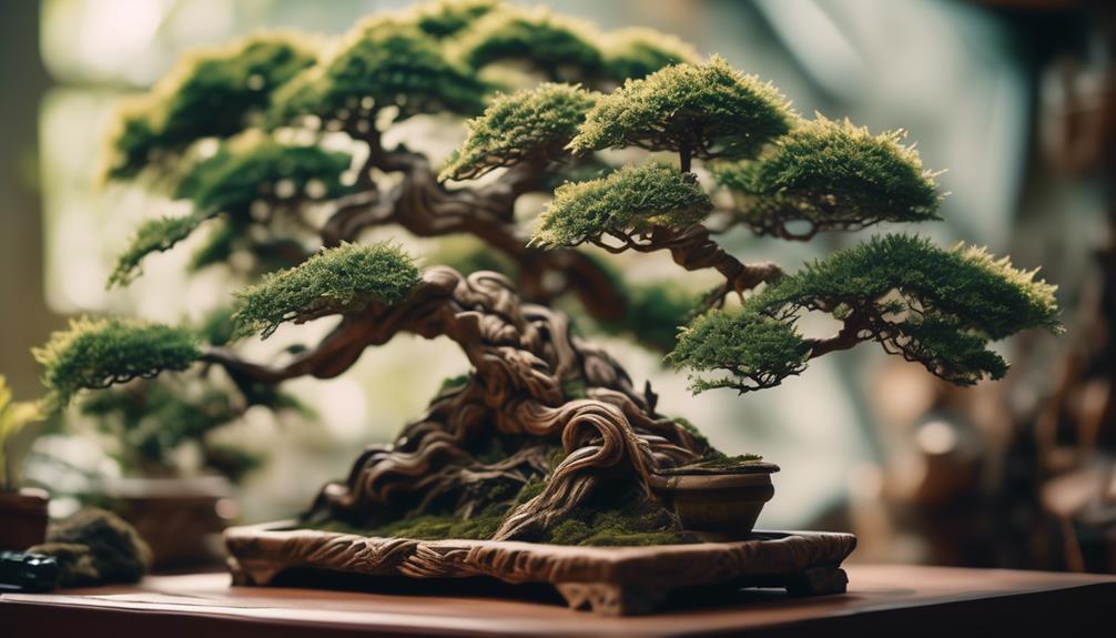 Wiring and shaping methods are crucial techniques used to sculpt trees into desired forms, allowing you to exercise your creativity and create stunning tree art. Bonsai wiring is a popular method that involves carefully wrapping wire around tree branches to guide their growth. This technique allows you to manipulate the direction and shape of the branches, helping you achieve the desired aesthetic outcome. However, it’s important to approach wiring with caution to avoid damaging the tree. Ensure that the wire is applied evenly and not too tightly, as this could restrict the tree’s natural growth.
