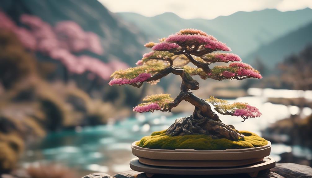Utilize the artistry of rock and moss arrangements to create a captivating sense of depth and perspective in your miniature landscape. In the art of bonsai, creating depth and perspective is essential to evoke the beauty of nature in a traditional Japanese style. By strategically placing rocks of varying sizes and shapes, you can give the illusion of distance and scale. Position larger rocks towards the back of the arrangement to suggest a sense of distance and make them appear smaller in comparison to the foreground elements. This technique adds depth to your miniature landscape, making it more visually engaging.